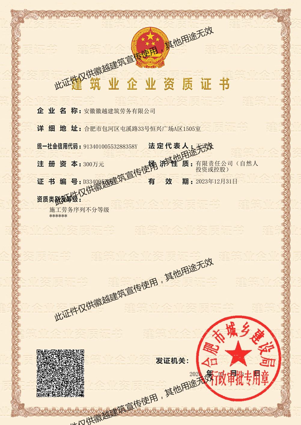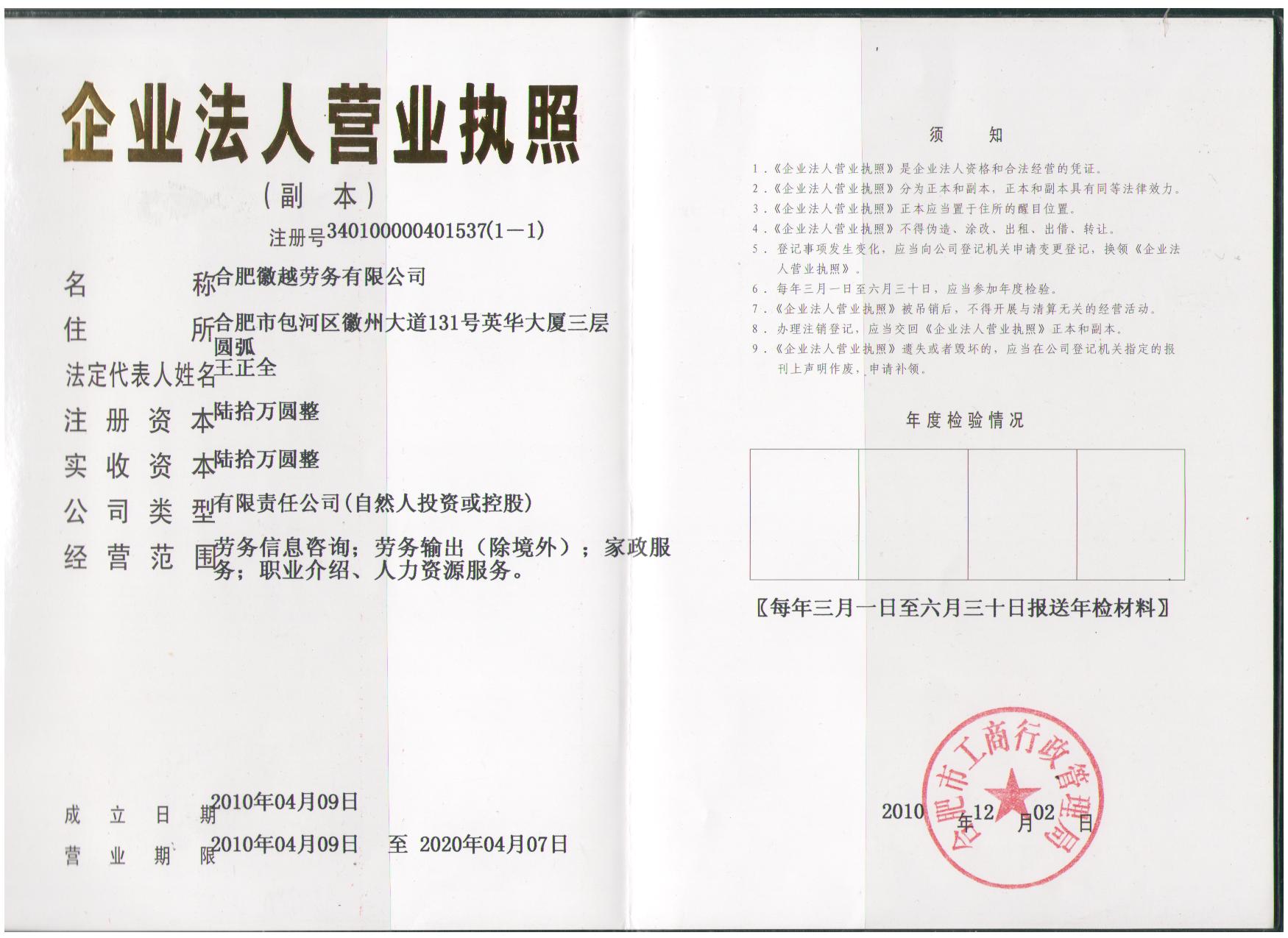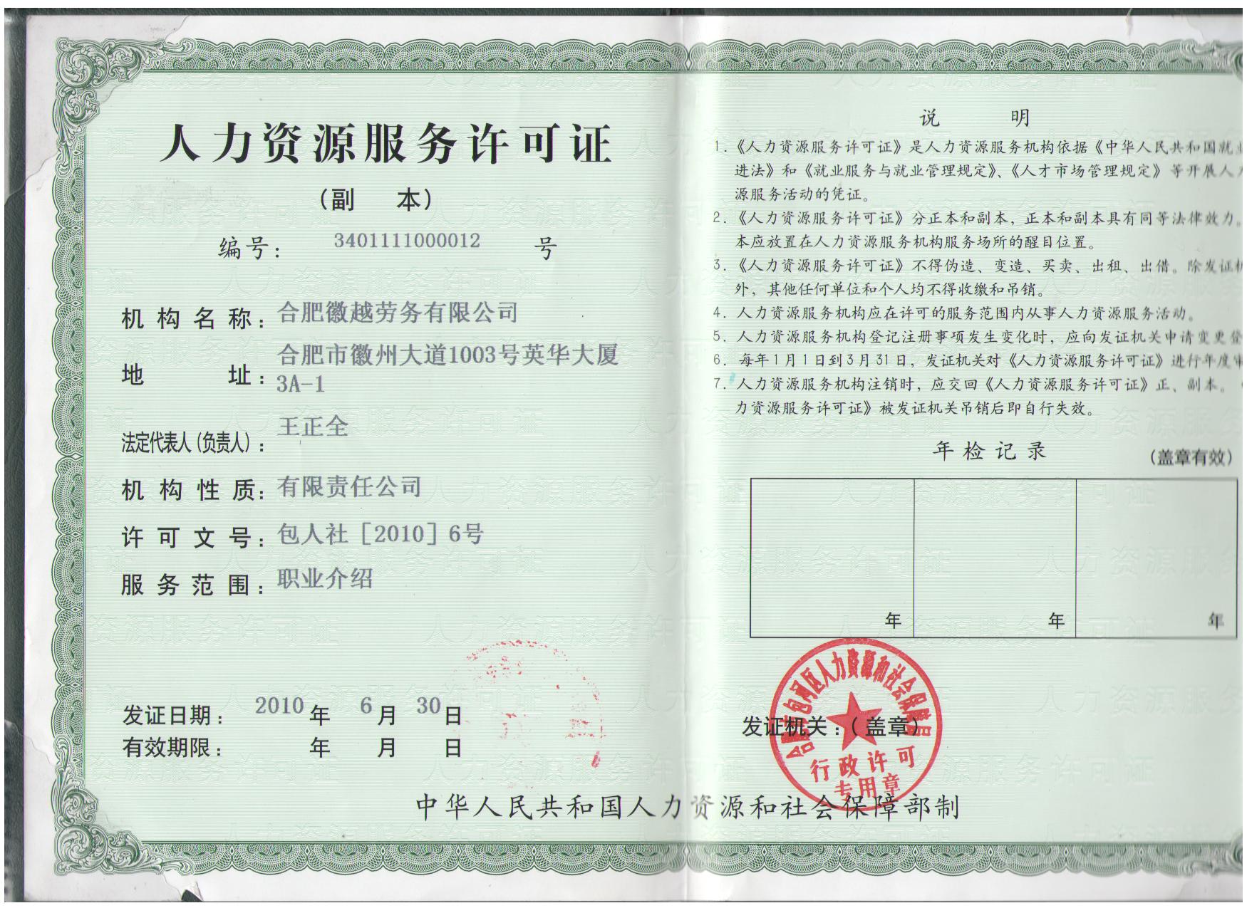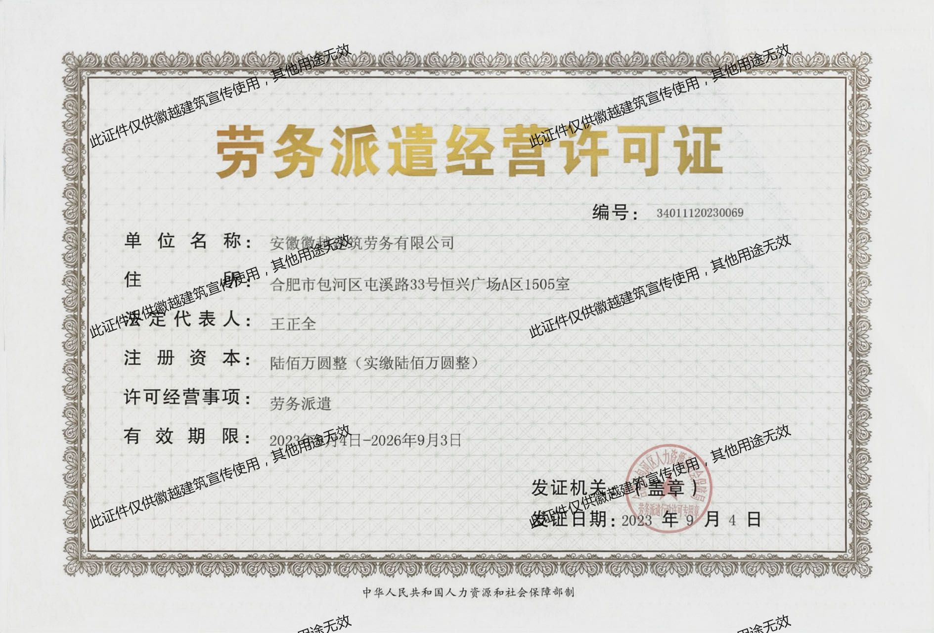 徽越公司自2008年中建總公司及多家世界500強企業授權招工資格以來,在同行業知名度信譽 度較高。徽越公司是安徽省一家經過合肥市工商行政管理局(安徽省工商行政管理局備案審核)、合肥市勞動和社會保障局及合肥市建設委員會(安徽省建設廳資質審批)審核批準成立的正規(guī)合法的且具有豐富建筑勞務輸出和項目施工管理經驗的信譽良好的勞務派遣和勞務分包...>>查看詳情